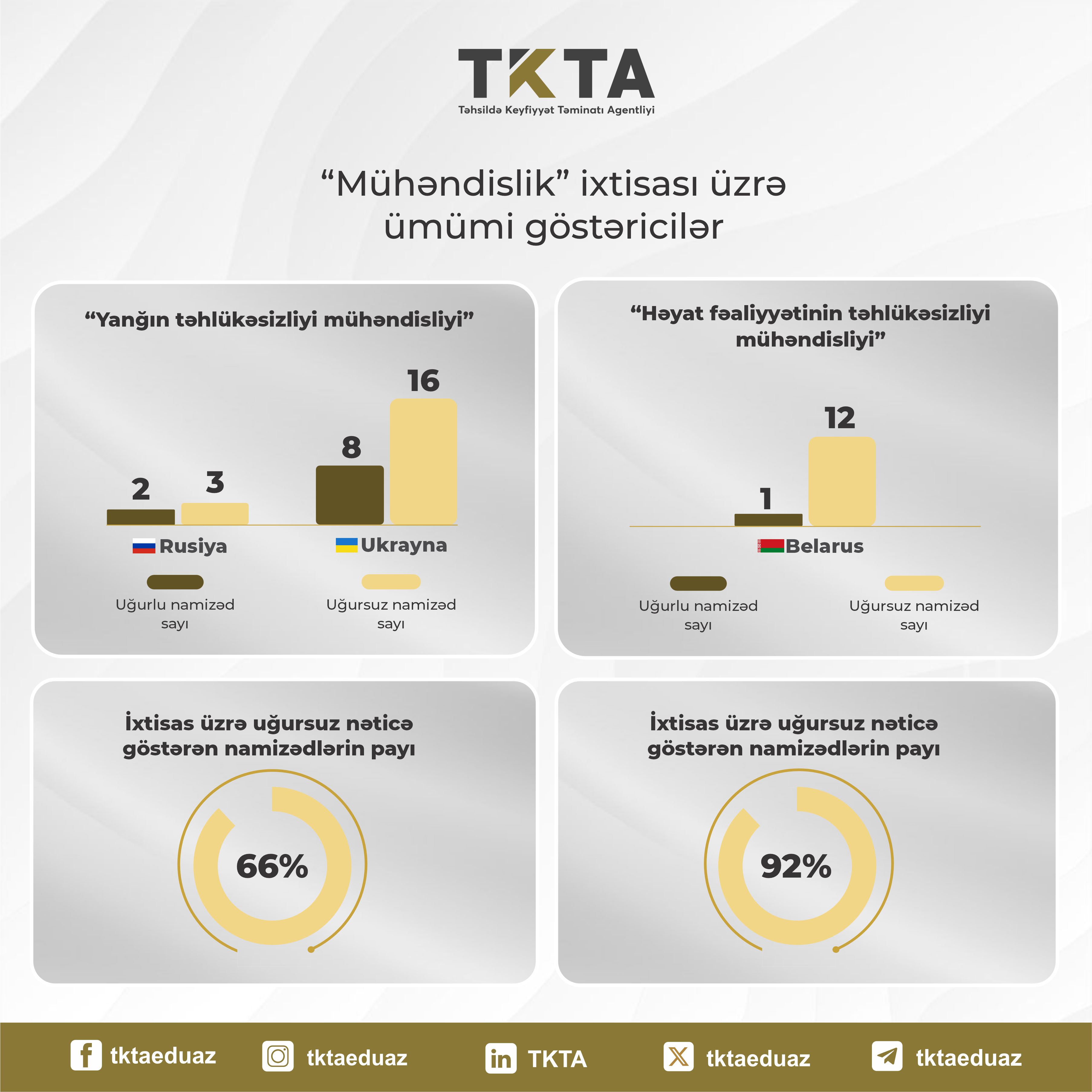 Beləliklə, “Həyat fəaliyyətinin təhlükəsizliyi mühəndisliyi” ixtisası üzrə peşə tanınması əldə etmək istəyən namizədlərin 92%-i müvafiq imtahanda uğursuz nəticə göstərib.