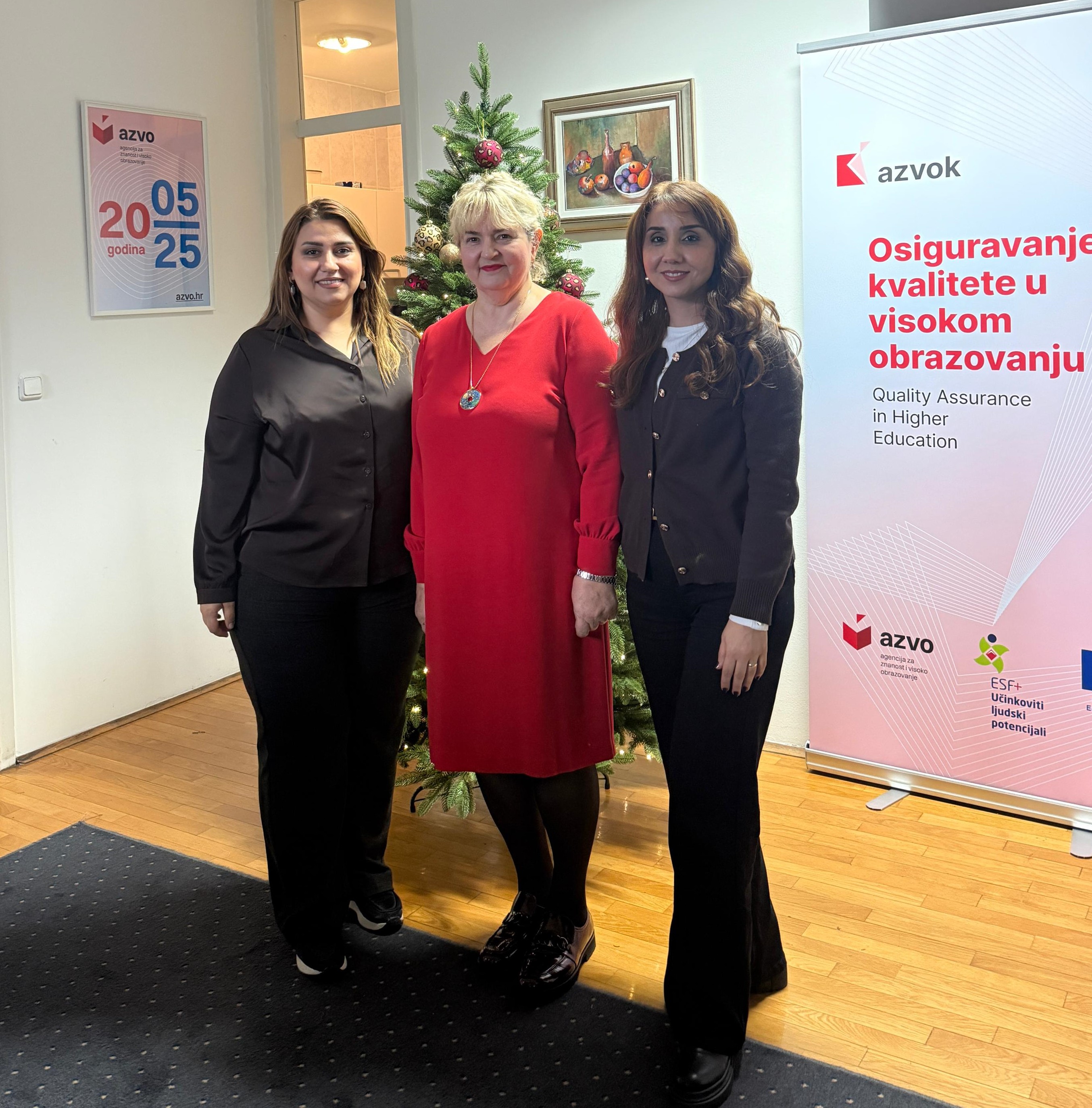 16-19 dekabr 2025-ci il tarixlərində Təhsildə Keyfiyyət Təminatı Agentliyinin (TKTA) Keyfiyyət təminatı departamentinin əməkdaşları Nigar Əsgərova və Bəyim Abdulla Xorvatiya Respublikasının Elm və Ali Təhsil Agentliyində (ASHE) heyət mübadiləsində iştirak edib.
